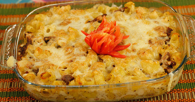 • Add boiled pasta, boiled beef and mix.