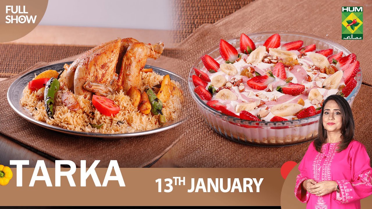 Tarka – 13 Jan 2023 – Recipes: Murgh Pulao, Strawberry Custard & Bengan Ka Bharta – Rida Aftab